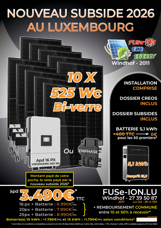 13.5€ par panneau pour le Luxembourg, déplacement inclus à partir de 16 panneaux, frontière luxembourg-belgique + 20km.
